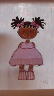 Este cuadro de una niña conbina la técnica de aplicación con la de pintura de ropa, una combinación muy bonita.